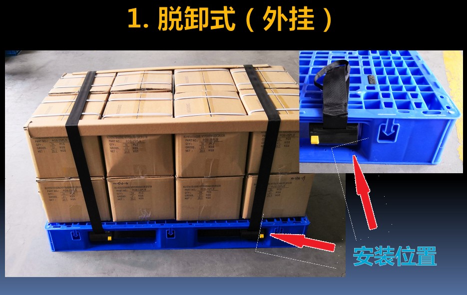 ●捆綁帶使用壽命達(dá)2萬次以上,可以從托盤上便捷拆卸,便于維修更換和循環(huán)使用。