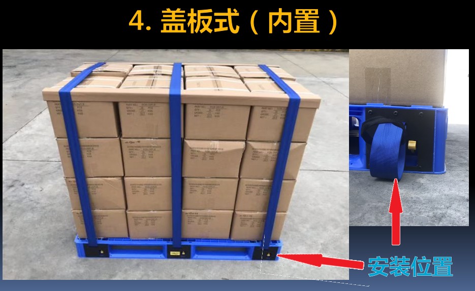 ●捆綁帶使用后可以自動(dòng)收卷,藏于托盤內(nèi)部,不外露,不影響存放和叉車使用。